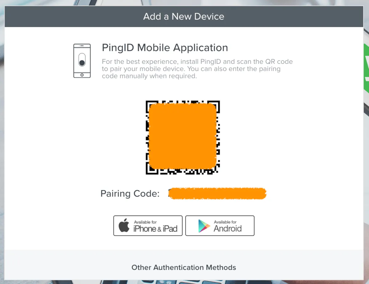 サインインできると、MFAのためのPingIDのセットアップが要求されます。スマートフォンのPingIDアプリケーションをインストールして、表示されているQRコードを読み込みます。