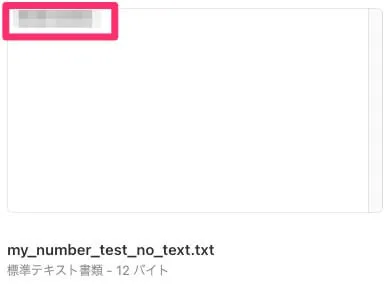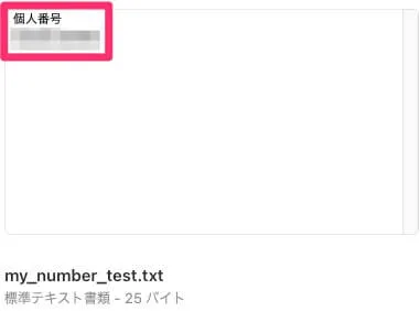 準備したファイルは「個人番号」という文字列と、ダミーのマイナンバー12桁が書かれたものです。マイナンバーのテスト用番号の扱いがいまいちはっきりしなかったので、ここでは伏せておきます。