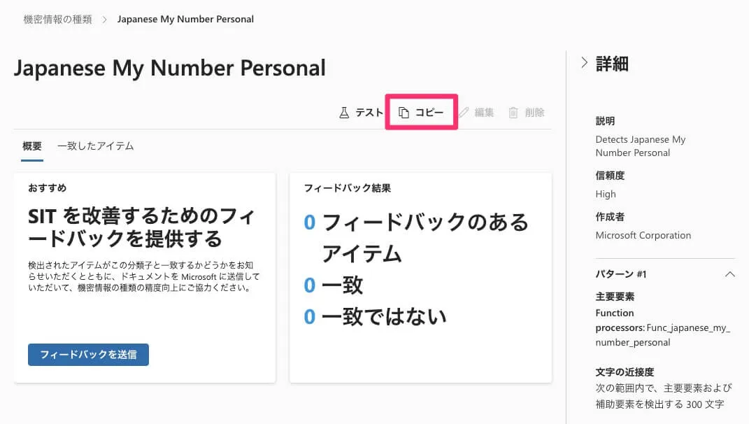 他の「機密情報の種類」もそうですが、適切に扱うためには中身の設定をなるべく把握しておく必要があります。