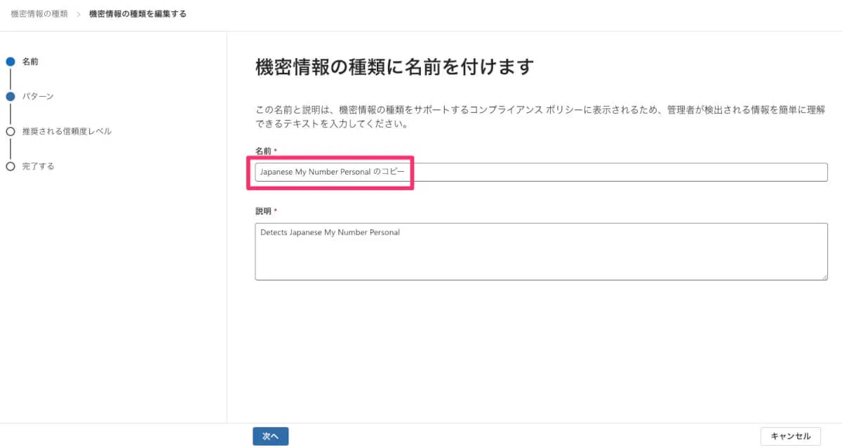 出来上がったカスタマイズした機密情報の種類を編集して内容を確認していきましょう。
