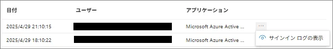 - 特定サインインログの [・・・] – [サインインログの表示] をクリックすることで、サインインログの詳細を確認することが可能