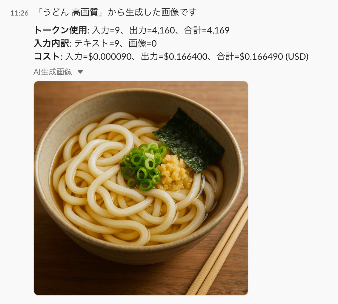 APIレスポンスにusage tokenが含まれるため、生成にかかったコストも通知するようにしています。