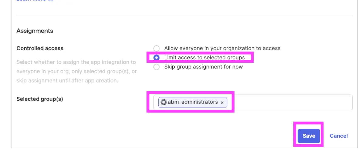 - Oktaの特権管理者及びABMにて管理者である必要があります。