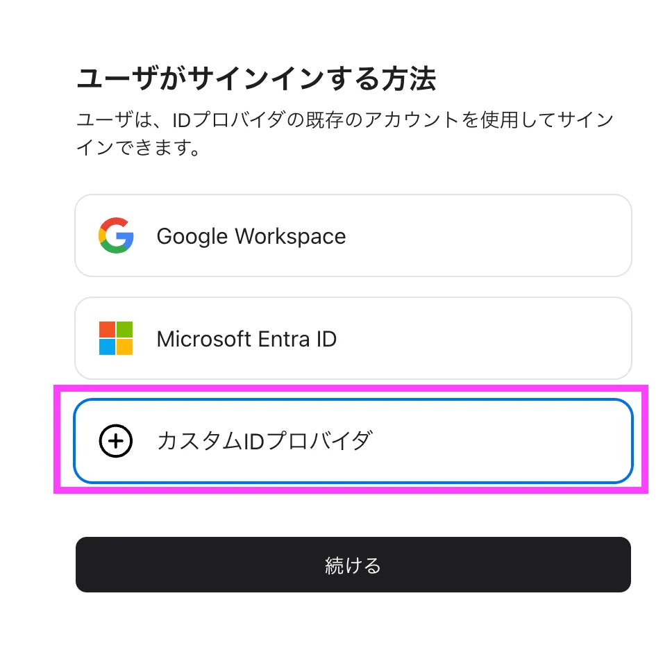 2. カスタムIDプロパイダ設定画面で以下を入力します。