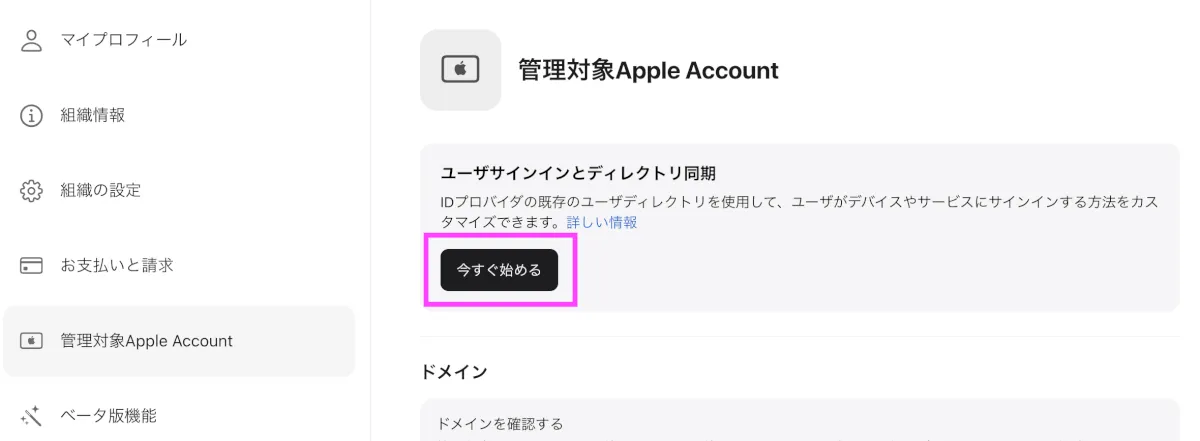 - ABMにてドメインを登録する必要があります。(※特にドメイン登録の要件は厳しいため、注意が必要です)