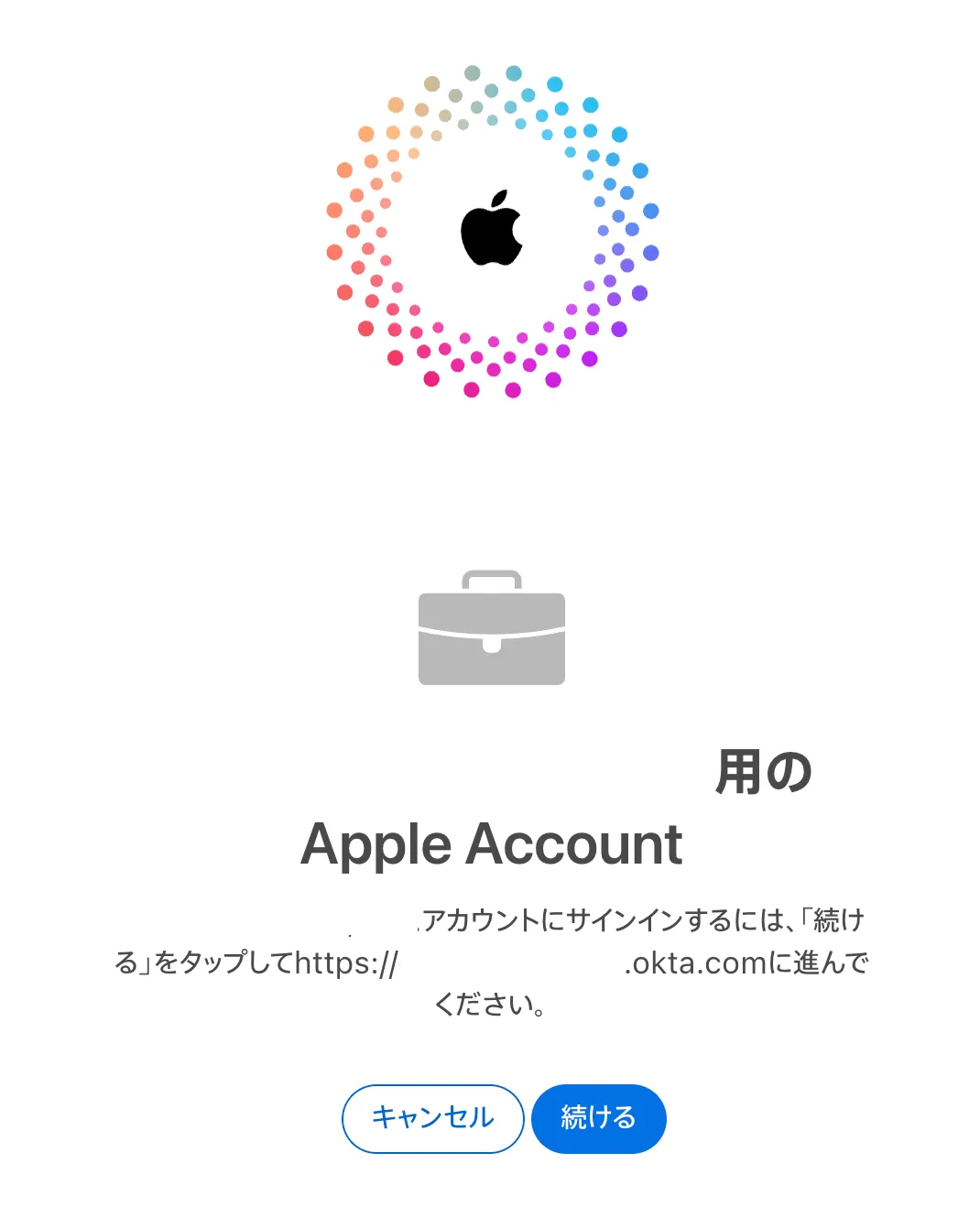 また、プロビジョニングしたユーザーはApple IDにログインする際にOkta経由でログインができるようになります。
