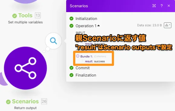 - 親Scenarioから子Scenarioを実行した際、元のScenarioへ結果を返すことができませんでした。
