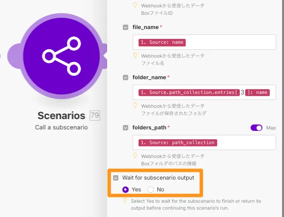 また、子Scenarioの実行を待つこともでき、適切なタイミングで後続の処理を実行させることが可能です。