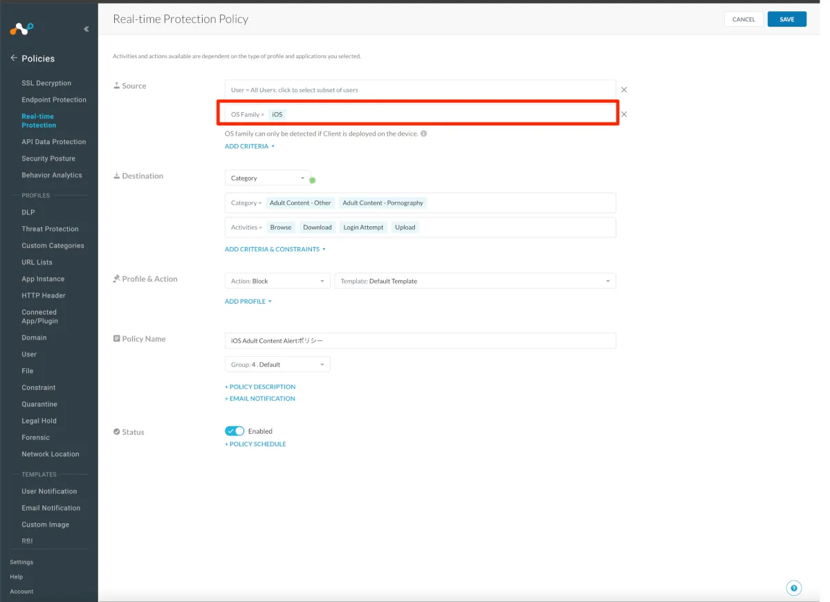 実際の設定を行なっていきます。今回は検証として、iOSのみ特定のカテゴリへのアクセスブロックを実装します。
