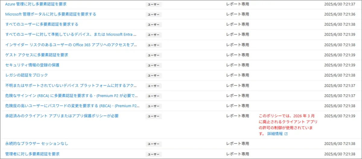 後述しますが、この機能の想定利用者はEntraを使い始めて間もないユーザーだと考えているため、せめて展開時に廃止予定ポリシーであることの注意書きを示すなど、もう少しユーザーフレンドリーである必要があると考えます。