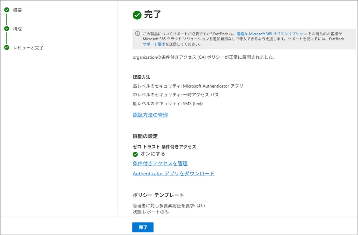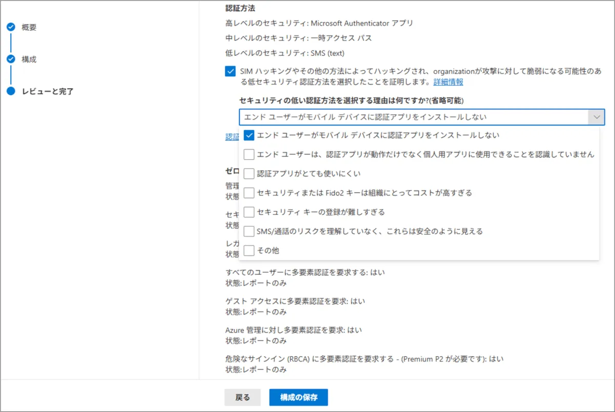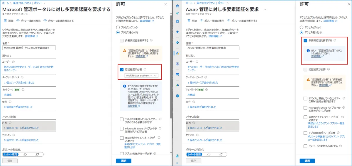 このテンプレートを使用した場合、ポリシー展開時のUI/UXから(手順⑥)から、「この認証強度を必須化できている」と誤認するリスクが生じます。