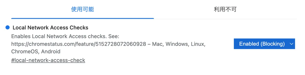 Local Network Access Checkと入力します。 - 表示された設定を Enabled(blocking) に変更します。
