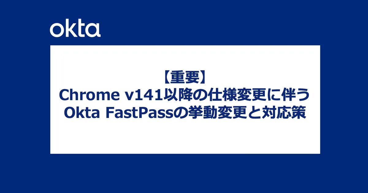 今回は、間もなくリリースされる Google Chromeの仕様変更に伴う、Okta FastPassの挙動変更について、対策をまとめた重要なご連絡です。