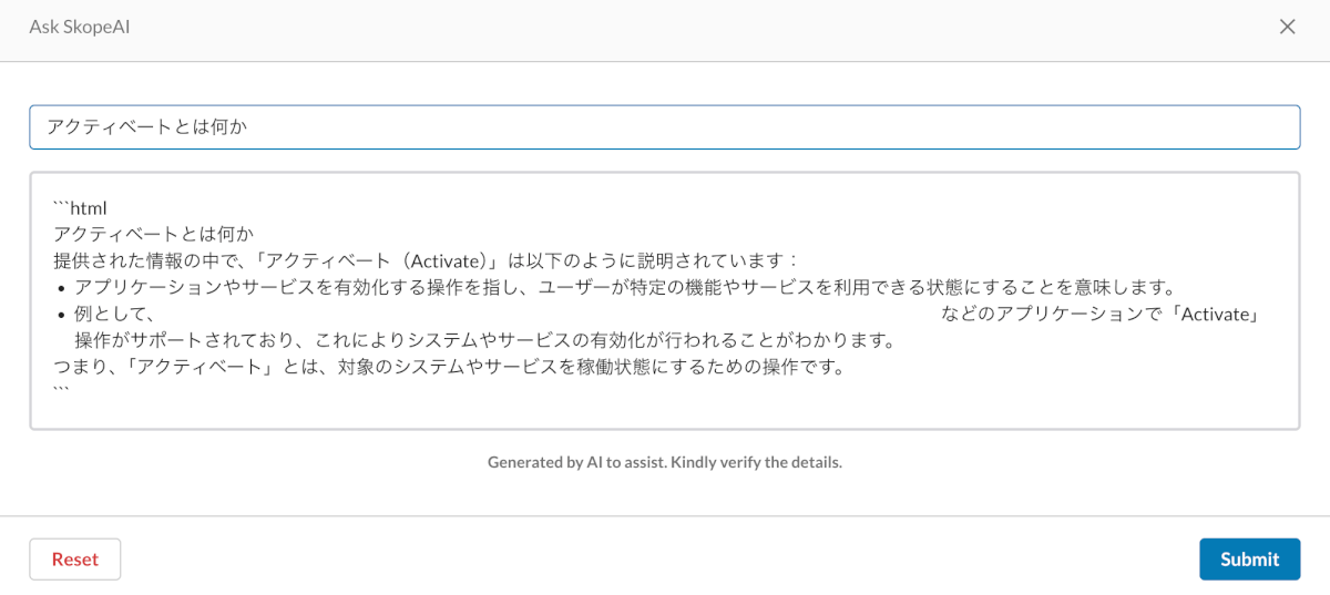 しかし、同じ言葉であっても「アクティベートとは?」のような、文脈が曖昧な質問にはまだ対応しきれていないため今後のさらなる機能向上に期待したいと思います。
