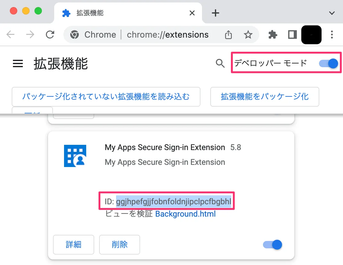- まずは拡張機能 ID を正しく確認する