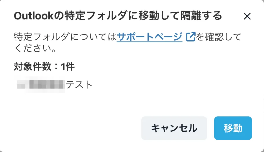 スキャン機能でスキャンしたメールを隔離フォルダに移動させる方法(Outlook)