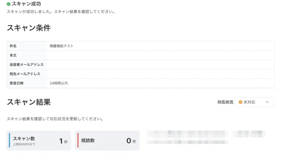 - 処理状況が[隔離成功]となっているメールが対象です。