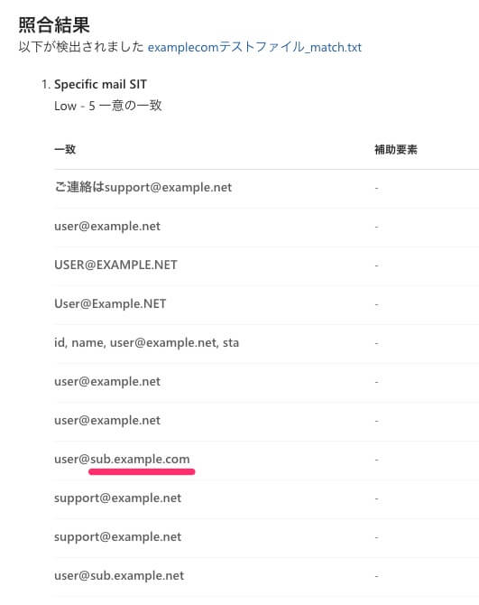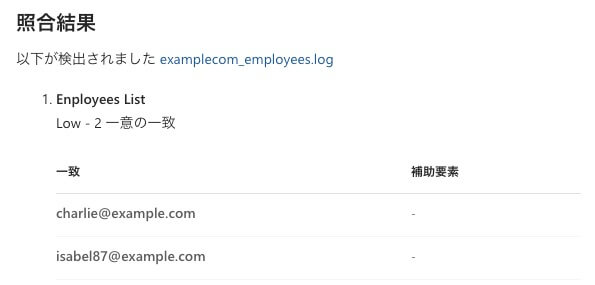 続いて「従業員メールアドレスのリストを検出する」のテストです。