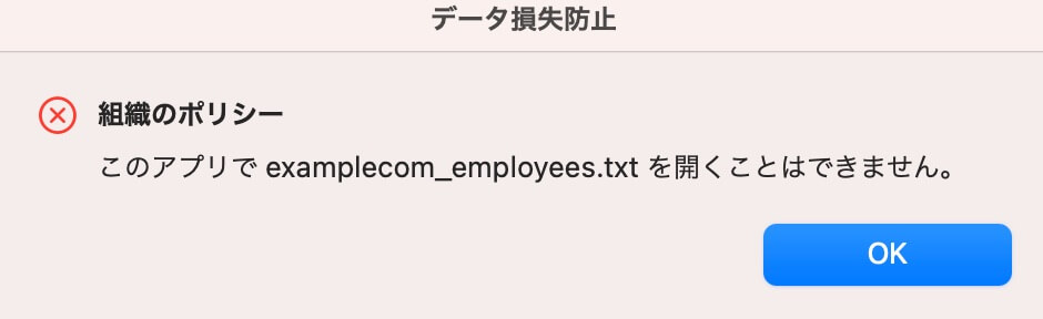MacOSでも同様にポップアップが出て禁止されている動作がブロックされました。