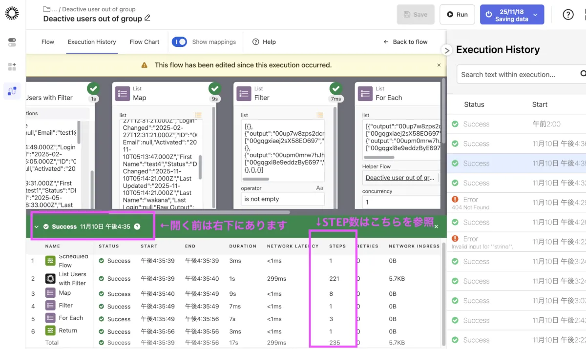 - 変更点1:月間5,000万ステップの上限が設定され、超過するとWorkflowが停止する。