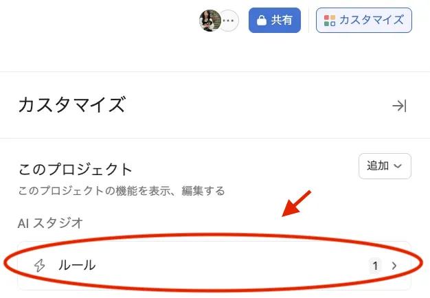 ②画面上部にある「カスタマイズ」をクリックし、「ルール」に進みます。