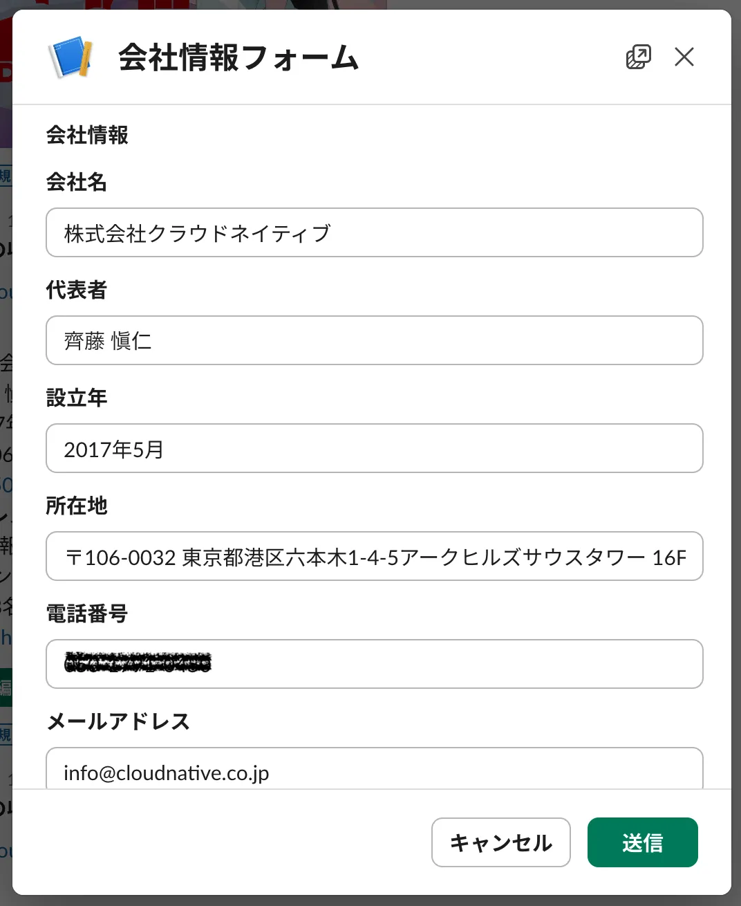 この時点で、会社名、代表者名、設立年、所在地、電話番号、メールアドレス、事業内容、従業員数など、必要な情報がほぼ揃いました。