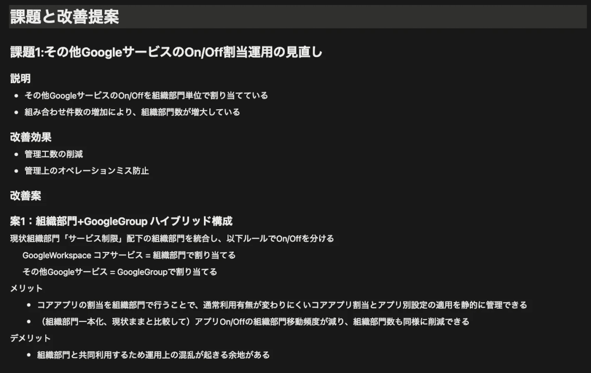 何より、環境調査のプロセスをやりきった人が、自社のGoogle Workspaceについて会話ベースで説明できる「生き字引」になる点が一番インパクト大きいですね。