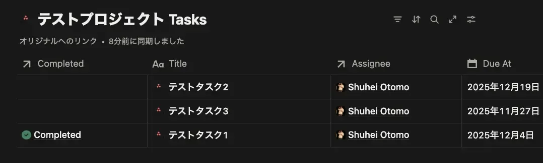 同期は一方向で行われ、内容の更新はAsana側で行うため、あくまでも内容確認用としての利用になります。 ただし、データベース自体がリンクになっているのでクリックすればAsanaにも素早くアクセス可能です!