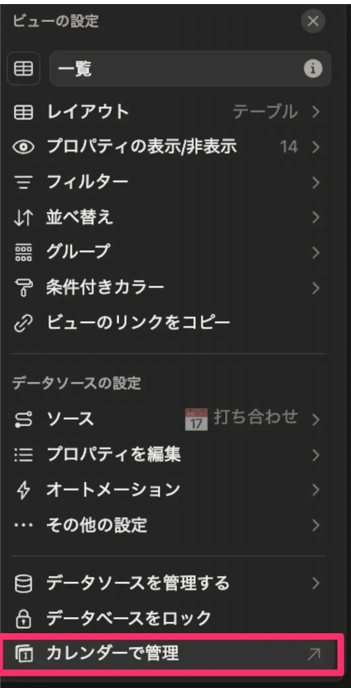 あとはデータベースの設定から「カレンダーで管理」をクリックするだけ! (設定見るだけで色々できることがわかるね)