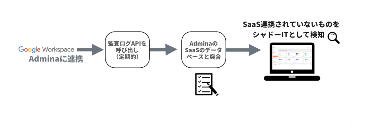 シャドーIT検知機能を使う場合にはSaaSとAdminaを先に連携して利用した方がより機能を活かせます。