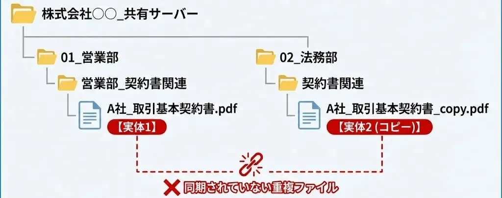 A社との契約書を保存したいが、営業部と法務部がそれぞれで管理したい