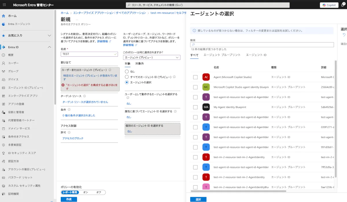 Agent ID / Agent ID Blueprintに対して条件付きアクセスを適用させることができます。