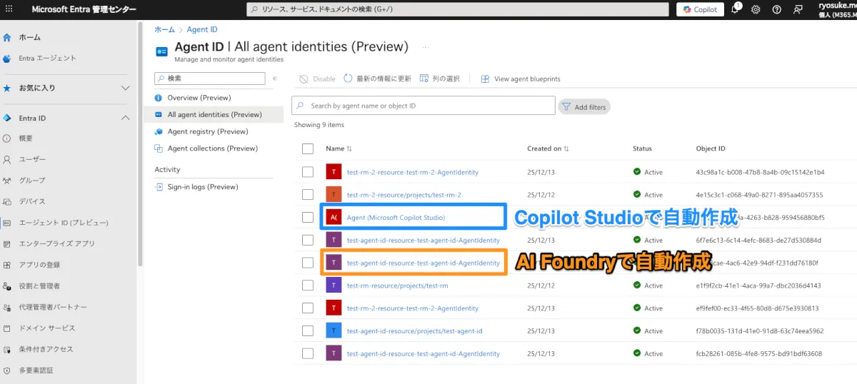 AI FoundryやCopilot Studioを始めとしたAgentic AIを使用する際に、ユーザーではなく固有のIDを払い出し、Entra IDに統合的に管理できる機能になっています。
