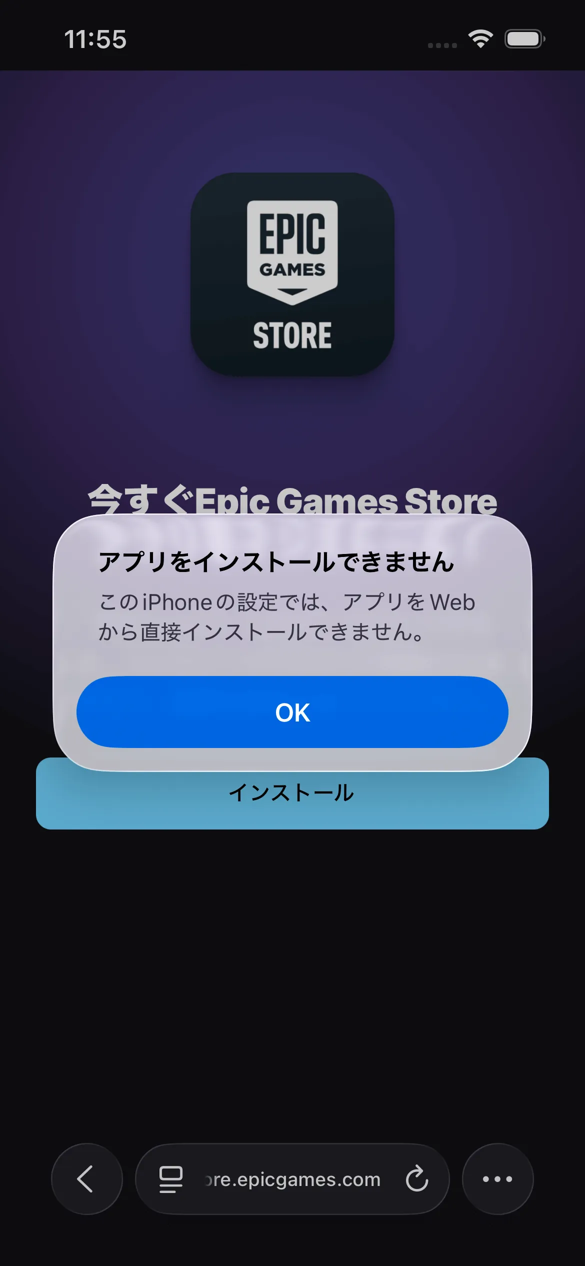 2025/12/17 時点では実際にWebからのアプリインストールはできませんでしたが、制限適用前後でポップアップの違いが確認できました。