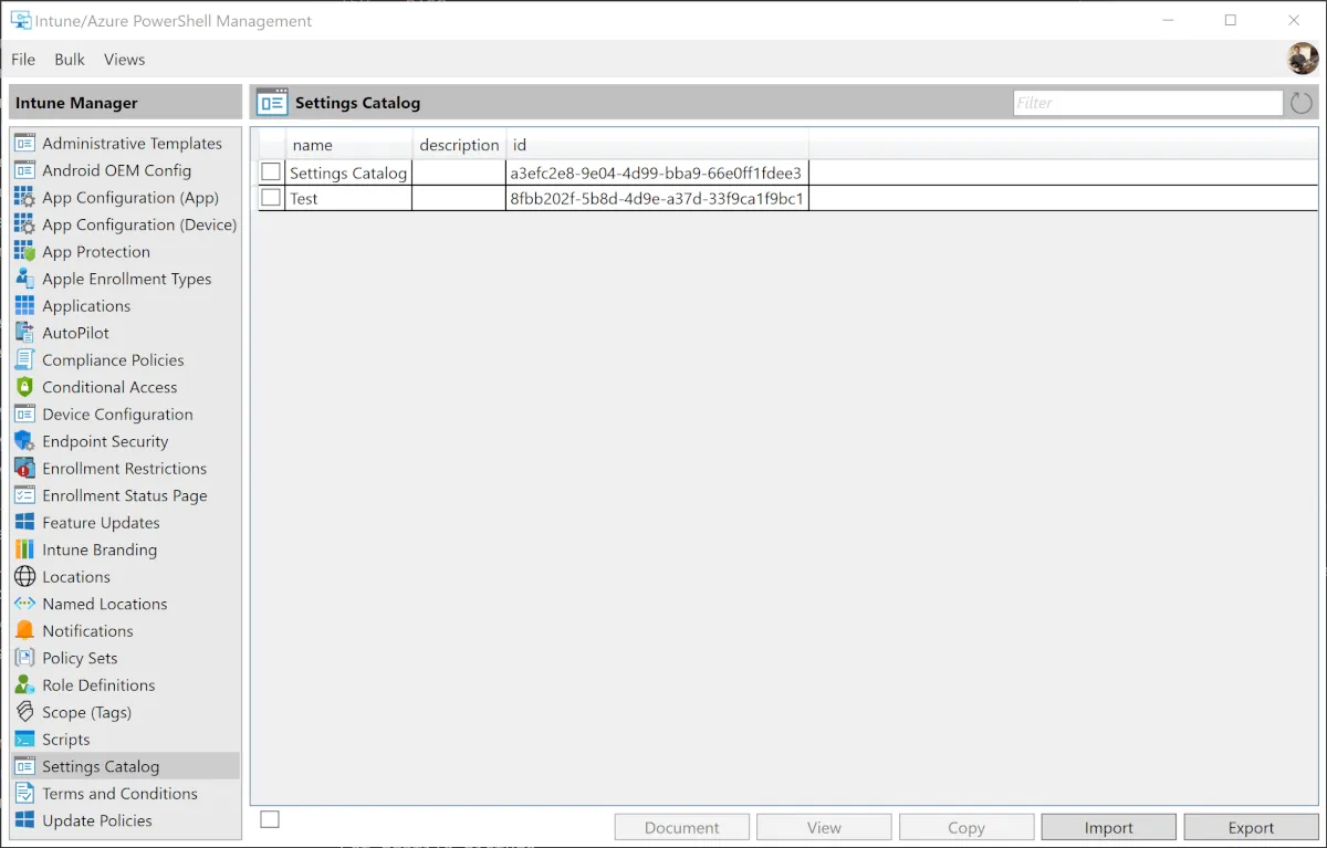 - Intune上のほぼすべての設定(プロファイル、アプリ、スクリプト等)を、GUIベースでエクスポート・インポートできます
