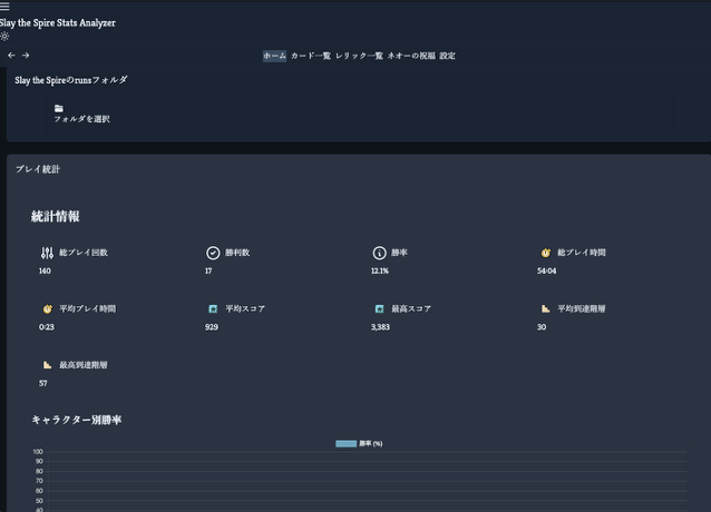 Slay the Spireというゲームの戦績を記録するためのPC用デスクトップアプリです。