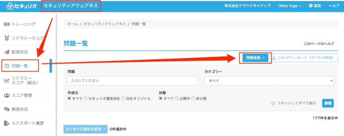 セキュリティアウェアネスで「オリジナル問題」を作成しよう