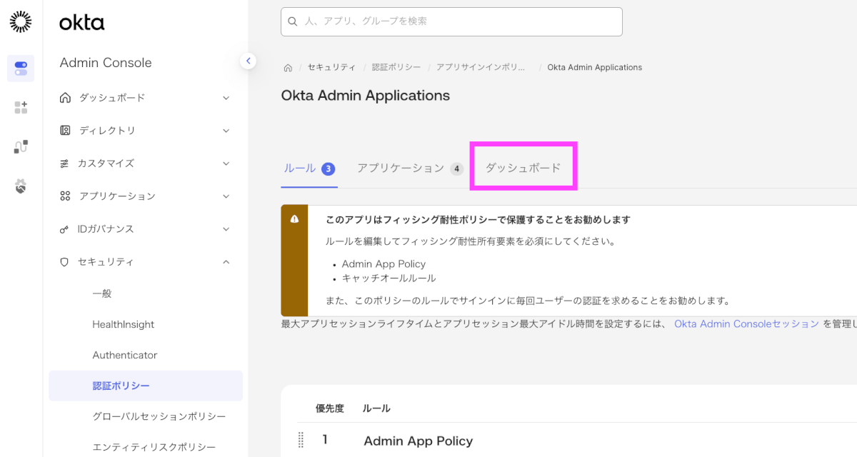 2. 認証ポリシーごとにダッシュボードを確認
