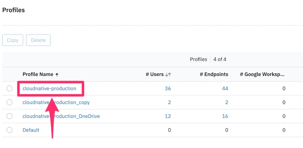 新たな設定でエラーが起きないことを確認の上、元のプロファイルに「除外設定の集約」と「割り当てユーザーの移動」を行い、本件は終了となります。