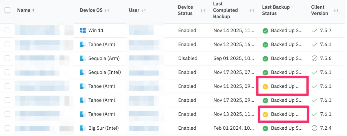 - いくつかの端末で(バックアップは完了しているものの)エラーが発生。