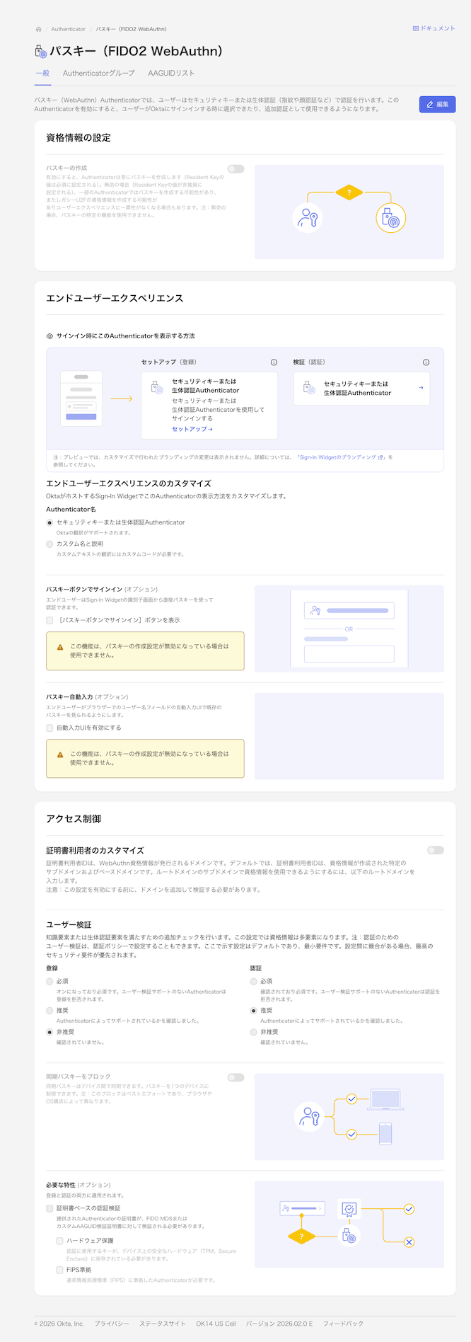 - 管理画面の統合:資格情報の設定・エンドユーザーエクスペリエンス・アクセス制御が1ページに集約され、タブで切り替え可能に