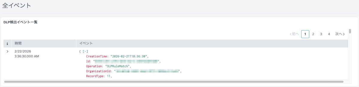 DLP検出イベント一覧
