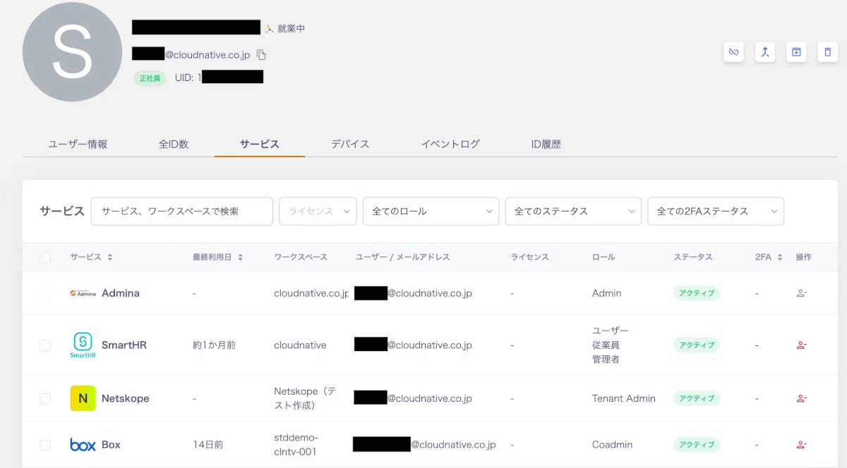 - ユーザー起点で保有サービスやライセンスが追えるので、確認と剥奪の手間を減らせます。