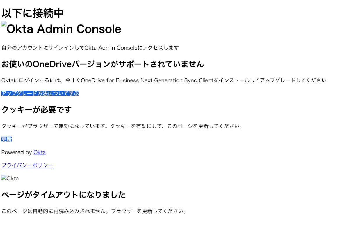 - Okta経由のSSO先(Microsoft 365、Salesforceなど)にアクセスできない