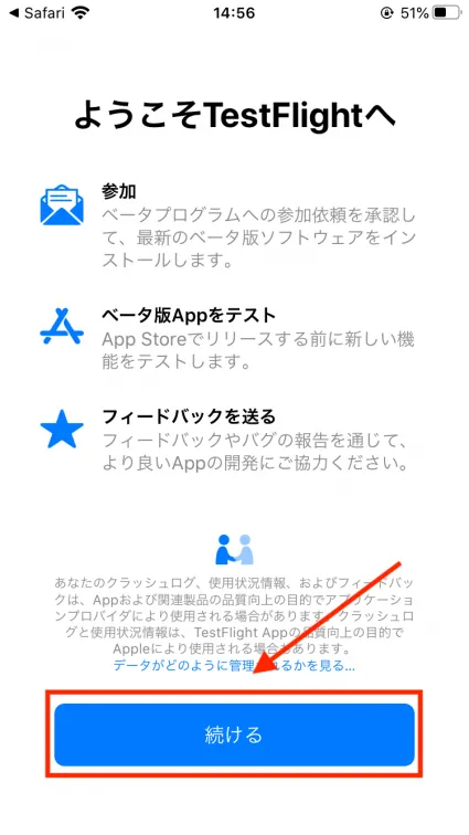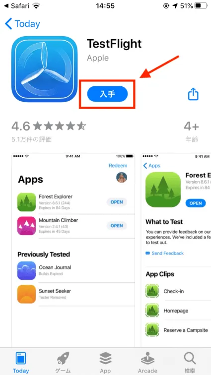 すると、このような画面が出てくるのでTestFlightをインストールします。