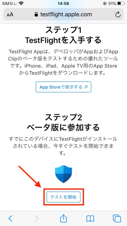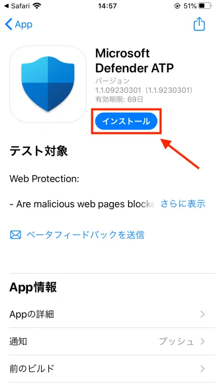 - TestFlightのインストールが完了したら、先ほどのURLに戻り、MDATPをインストールします。