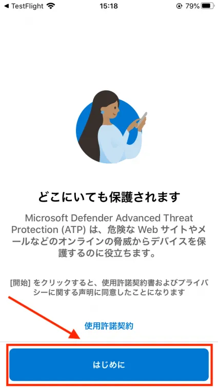 - “テストを開始”を選択すると、TestFlightが立ち上がり、MDATPのインストール画面が表示されます。(TestFlightの通知設定などはお好みでどうぞ)