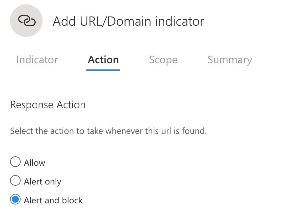 しかし、これだけだとちゃんと動作しているかが分からないので、MDATP側でカスタムインジケーターを設定して特定のURLへのアクセスを制限してみました。
