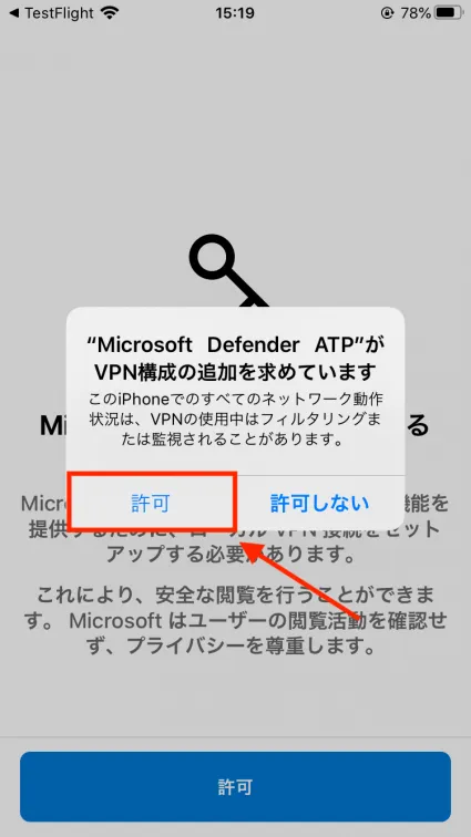 - VPN設定を求められるので”許可”を選択します。