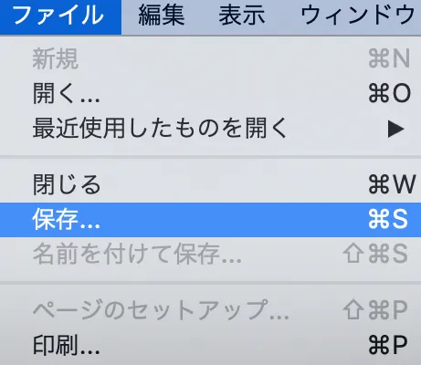ファイル→保存、または Command(⌘)+Sキーを押して、保存します。